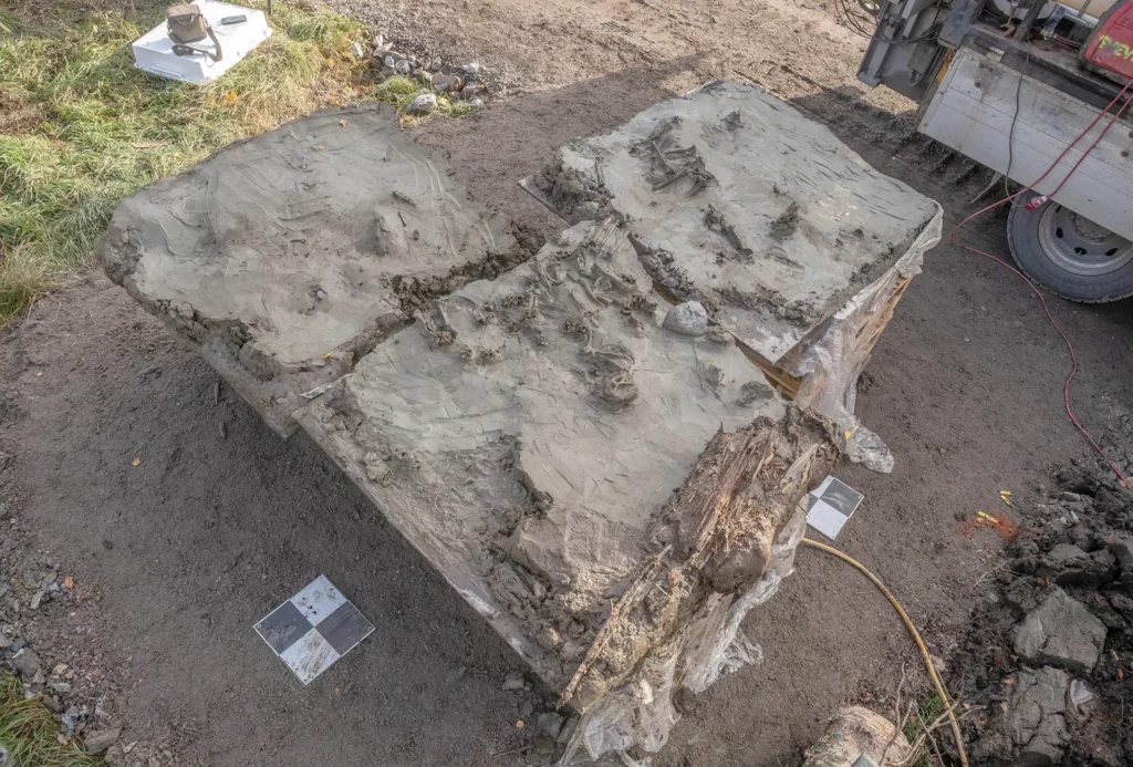 Skelettet av en hund, en bendolk, bearbetade pålar och en mjärde. Det är några av de unika 5 000 år gamla fynd från stenåldern som Arkeologerna vid Statens historiska museer har grävt fram ur en mosse i Gerstaberg, utanför Järna.