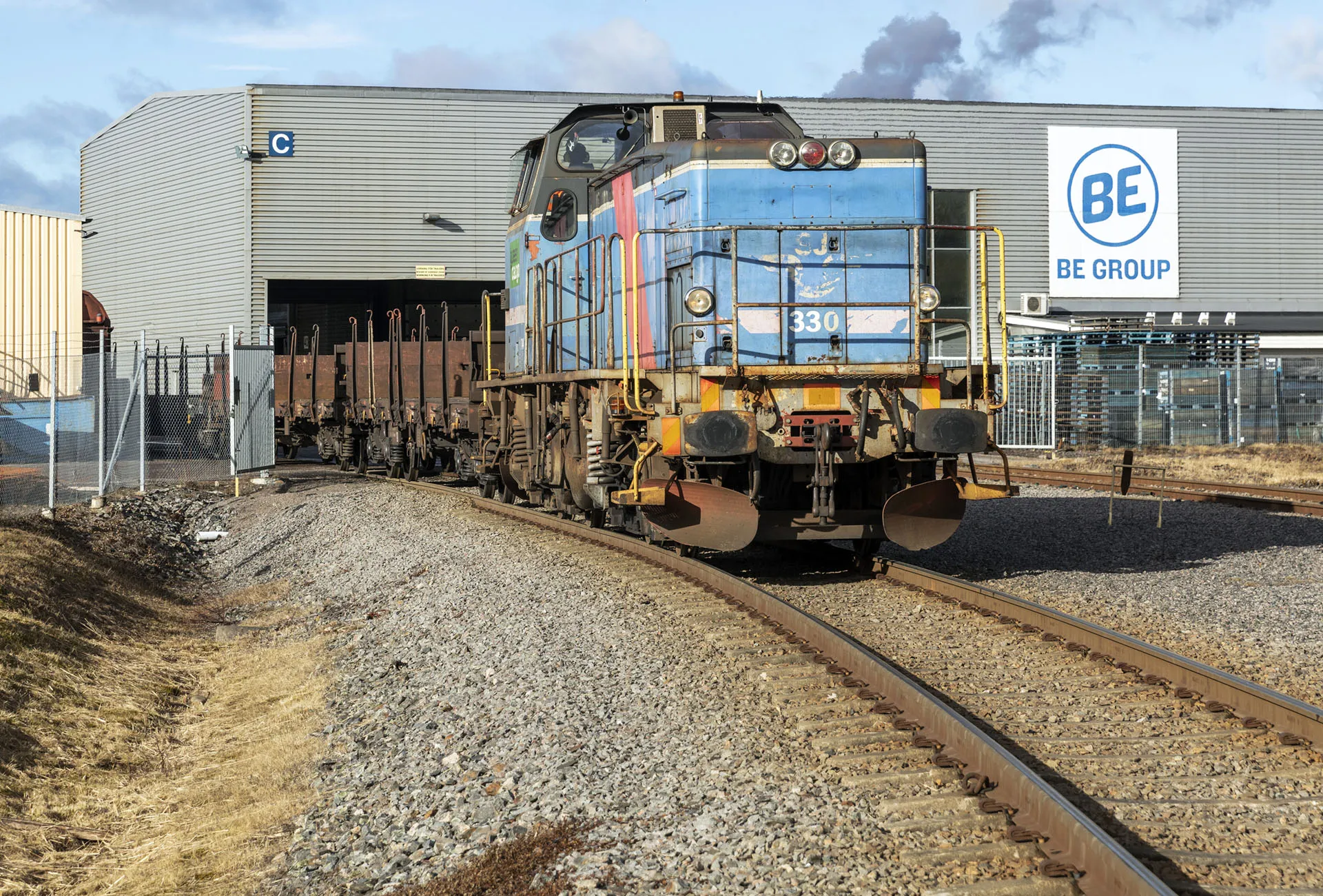Försvarsmakten vill att äldre diesellok bevaras för att kunna dra tåg i kris och krig när elsystemet är utslaget. Green Cargos T44 330 drar tomvagnar från BE Group på Hamnbron över Motala Ström i Norrköping 17 februari 2022.