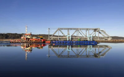 Om tre månader ska tågen åter börja rulla över Trollhätte kanal i Vänersborg. Under lördagen transporterades klaffbron på pråm från Göteborg till Vänersborg på Göta älv.
