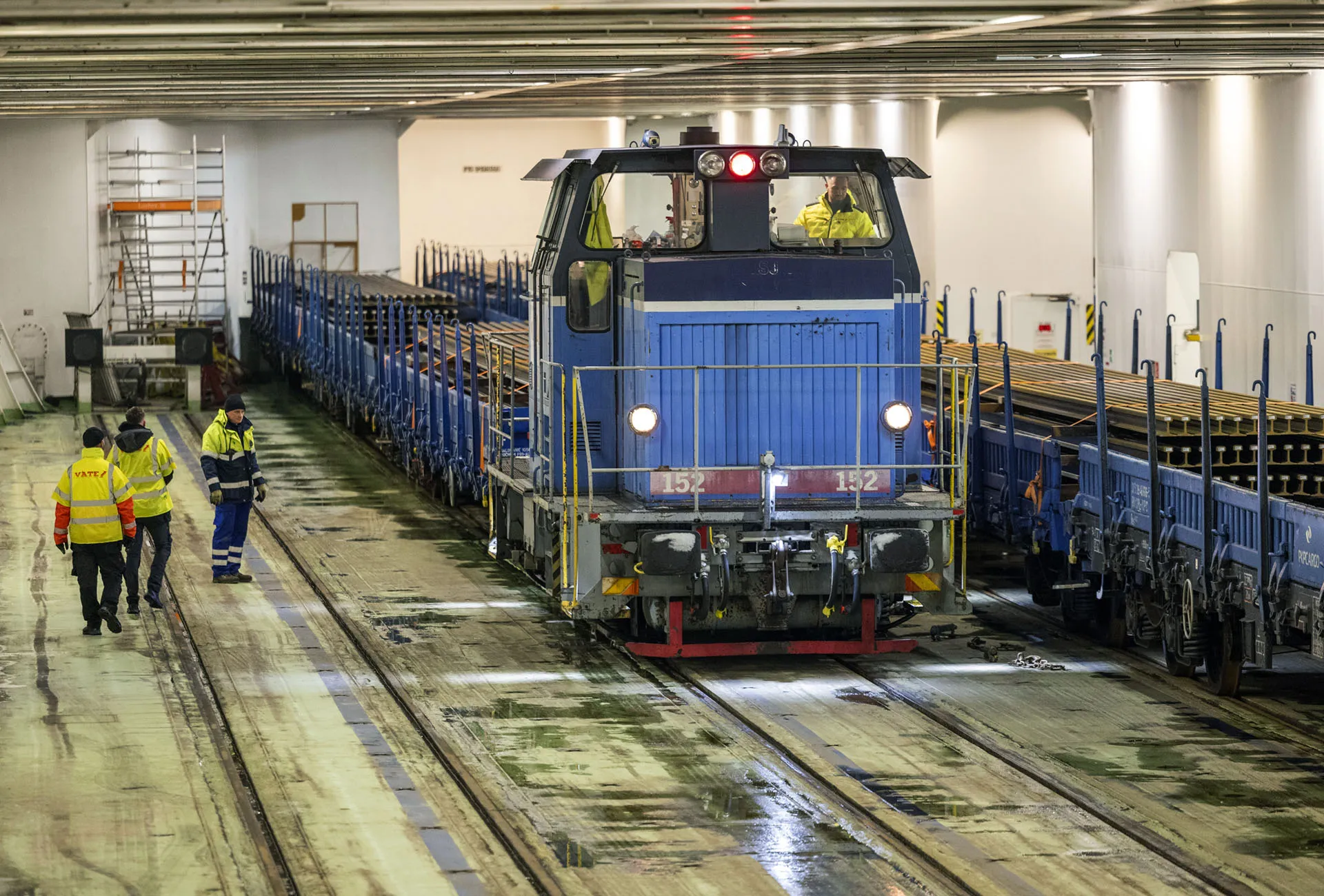 Men med överföringen av öppna godsvagnar lastade med räler från södra Polen till Sannahed har tågfärjetransporterna blivit mer regelbundna.