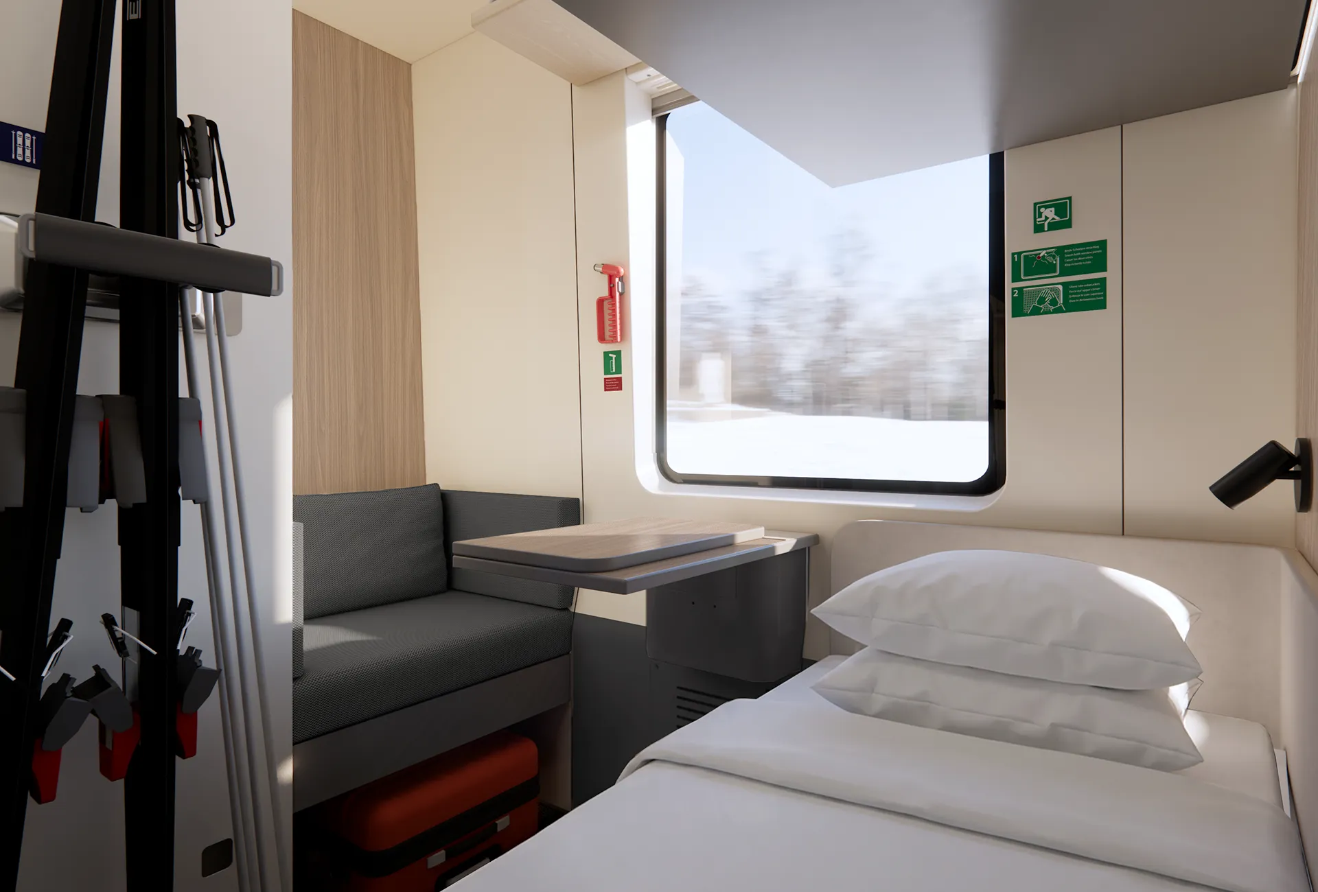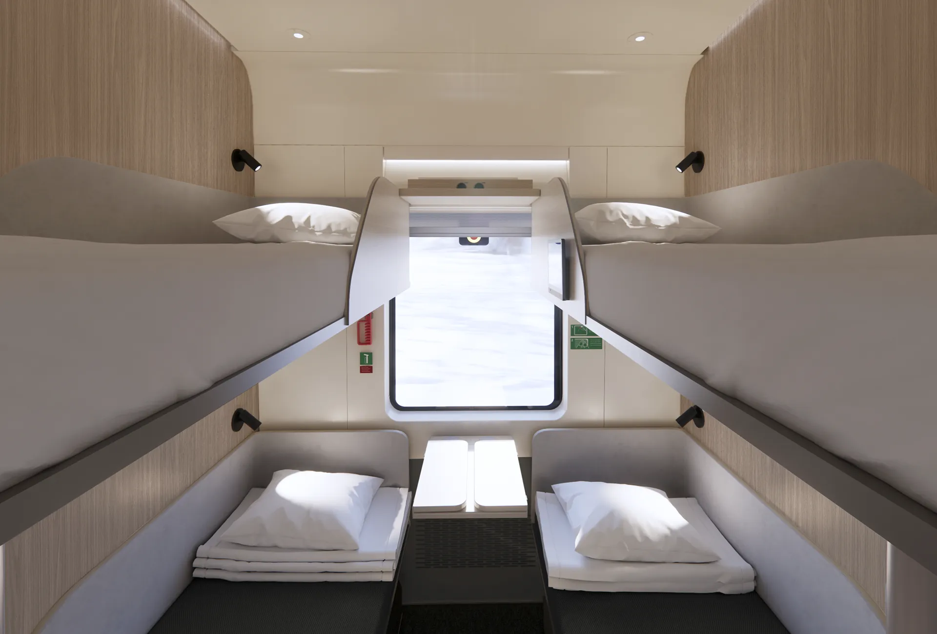 De nya nattågen har flera olika kupélösningar: familjekupéer för fyra personer, premiumkupéer med två bäddar med egen dusch, singelkupéer och tillgänglighetsanpassade kupéer för resenärer med rörelsehinder.