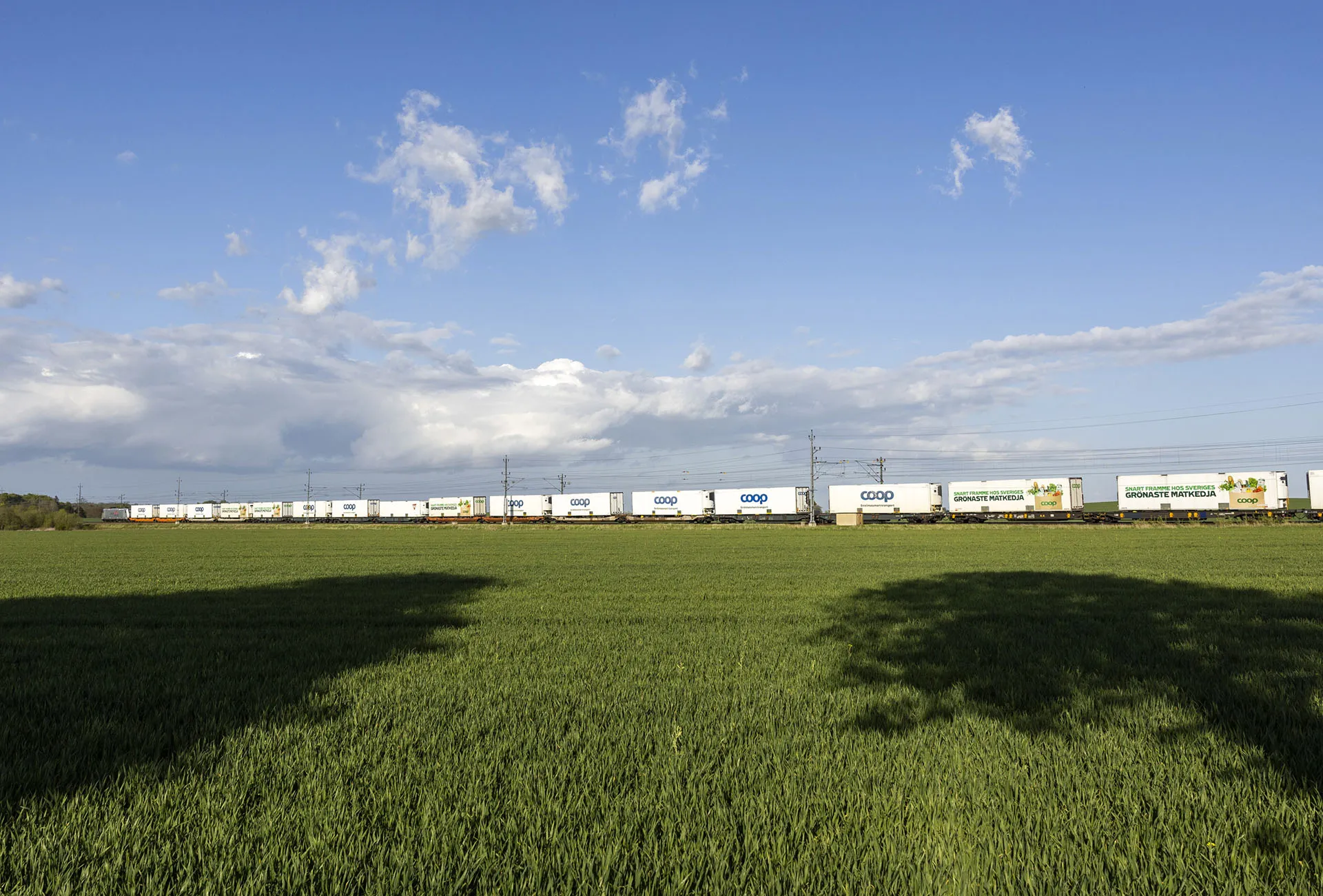 Energiförbrukningen per ton transporterat gods på järnväg är liten. Godstågen använder i dag knappt 1 TWh el och även en fördubbling skulle motsvara mindre än en procent av Sveriges totala elanvändning. Ett 838 meter långt tåg med 24 vagnar med 48 lastbilstrailrar och vagnvikten 2024 ton på Södra stambanan 8 maj 2022.